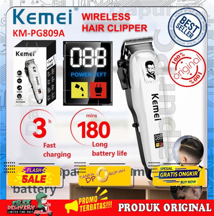 KEMEI KM PG 809A WIRELESS HAIR CLIPPER RECHARGEABLE CORDLESS SHAVER ALAT CUKUR