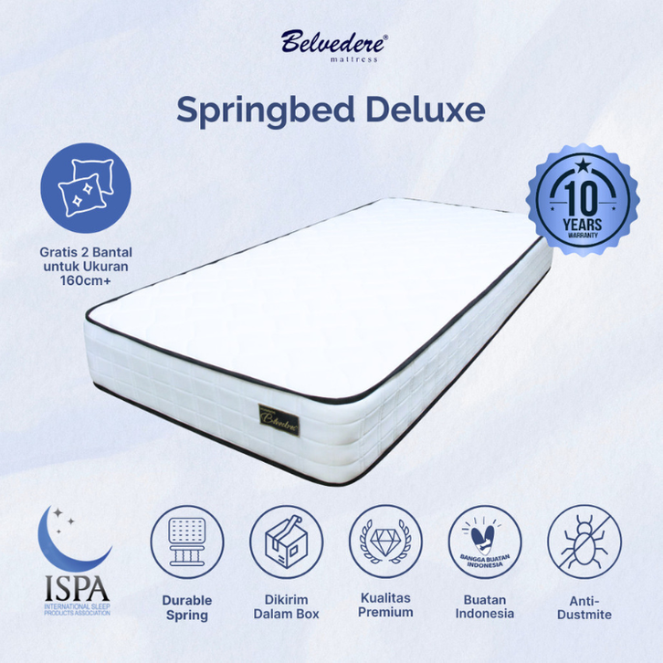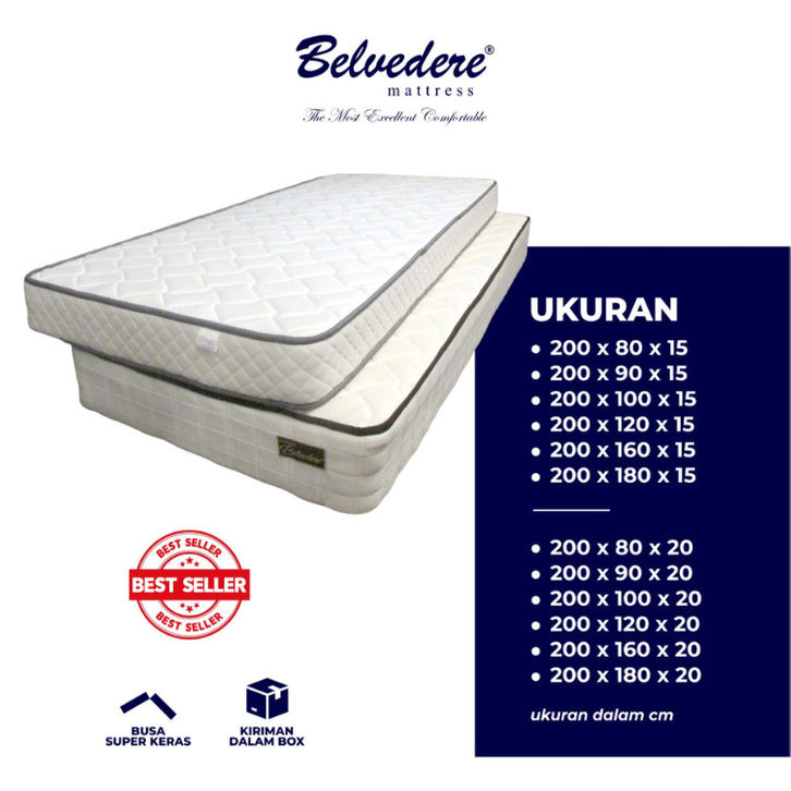 KASUR SPRINGBED BELVEDERE DELUXE IN BOX BONEL SPRING SIZE 180X200 120X200 TEBAL 20 15 CM ASLI MURAH BEST SELLER