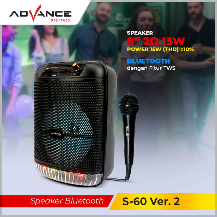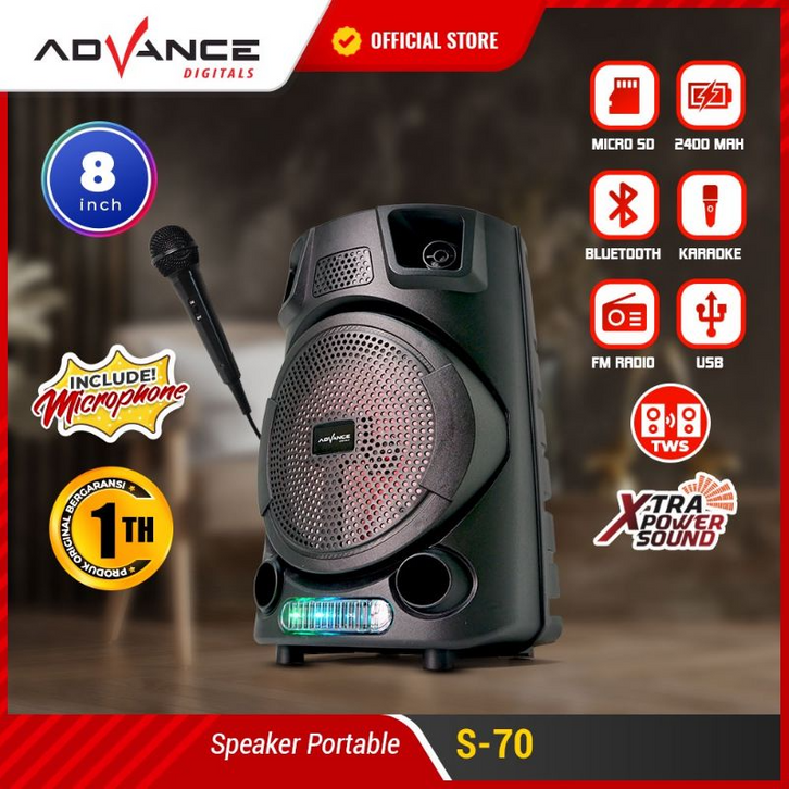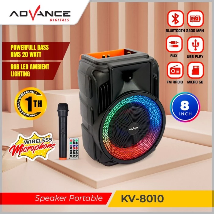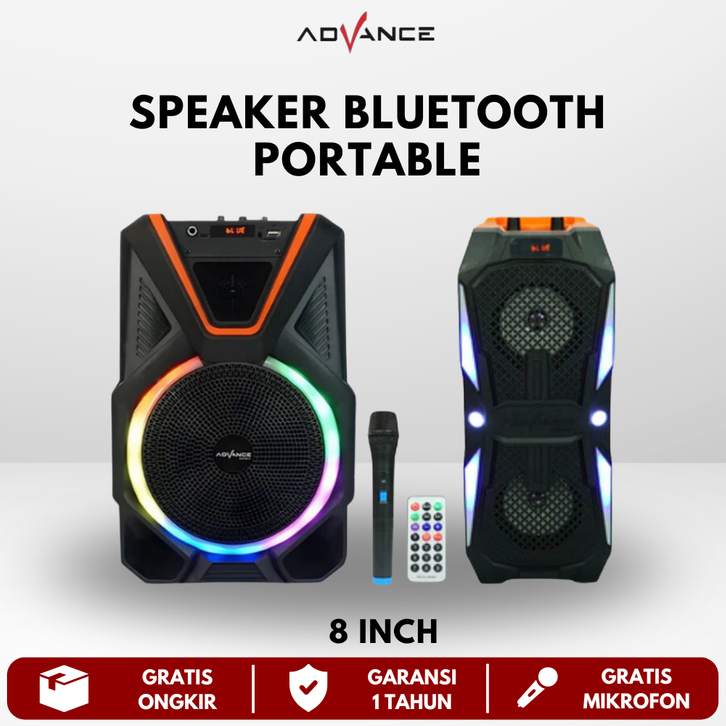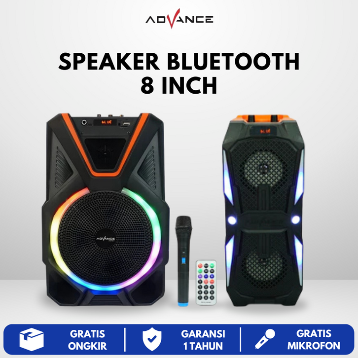 Speaker Bluetooth Aktif Advance 8 Inch Free Mic Karaoke Salon Full Bass Original Pma Pas 12/15 Jbl Polytron Gmc