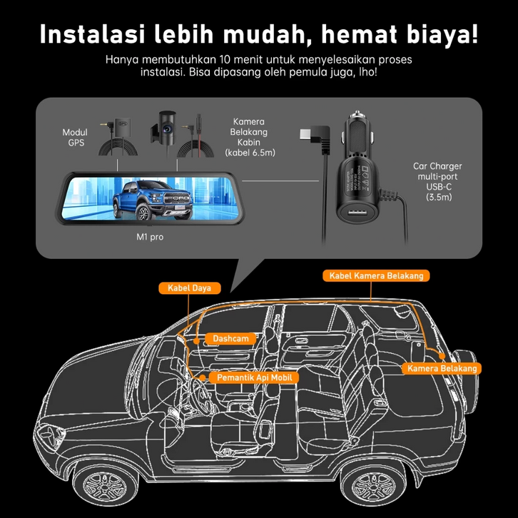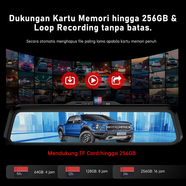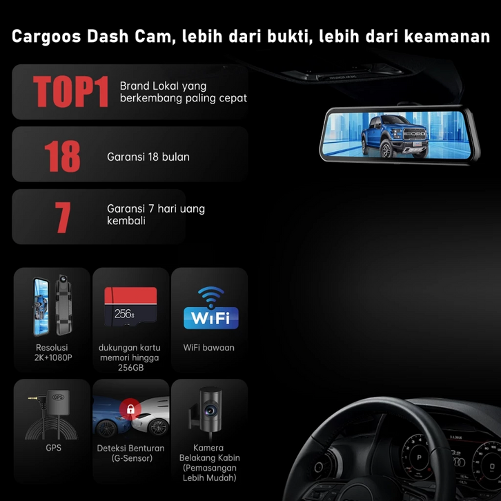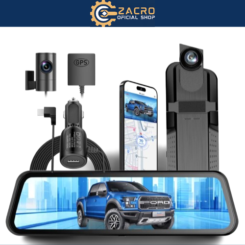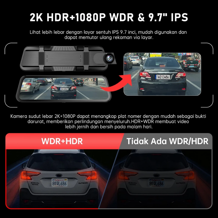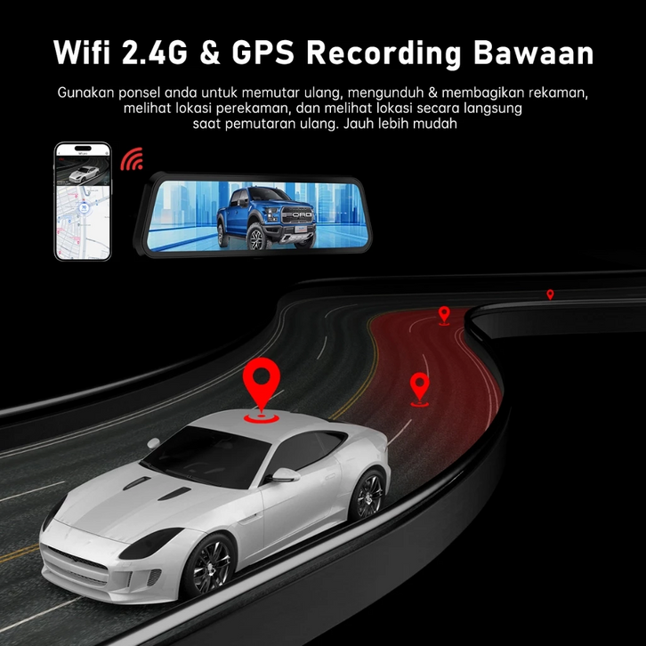 Dash Cam Mobil 2K Spion UHD WiFi GPS Car layar 9.66'' Big Touch IPS Rearview Mirror 2 Kamera Depan & Belakang