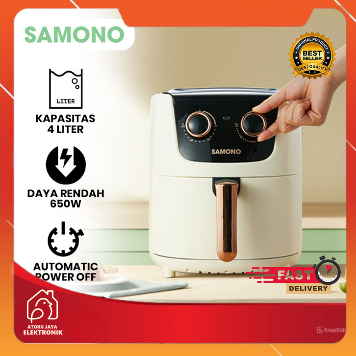 SAMONO AIR FRYER 4 LITER 650 LOW WATT MESIN PENGGORENGAN TANPA MINYAK TOUCH SCREEN MAGIC FRYER POT 7 MODE MASAK SW
