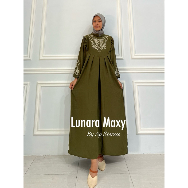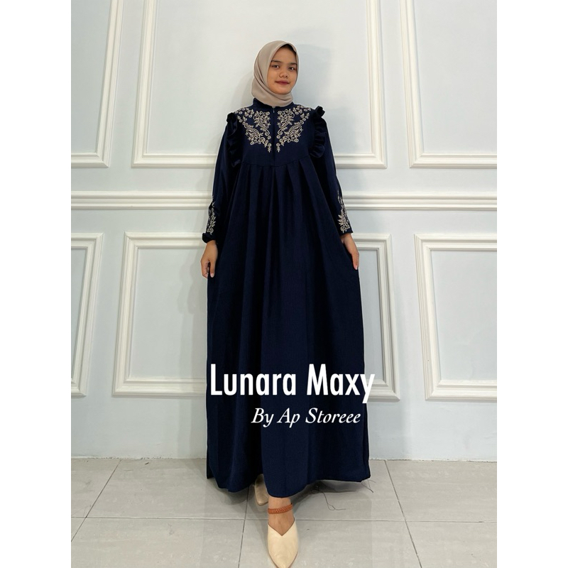 TERBARU - LUNARA LD L 110 & XXL LD 130 DRESS BORDIR MAXY CRINGKEL AIRFLOW / GAMIS BORDIR