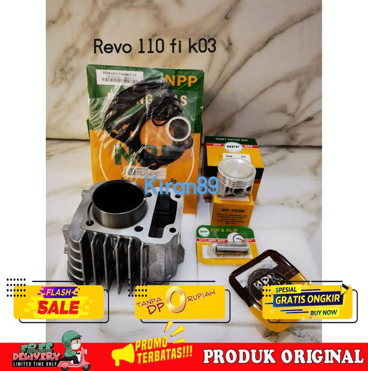 DISKON/BLOK SEHER CYLINDER BORING REVO FIT 110 FI K03 INJEKSI PLUS PAKING TOP SET/PISTON KIT SEHER PAKET ORIGINAL NPP