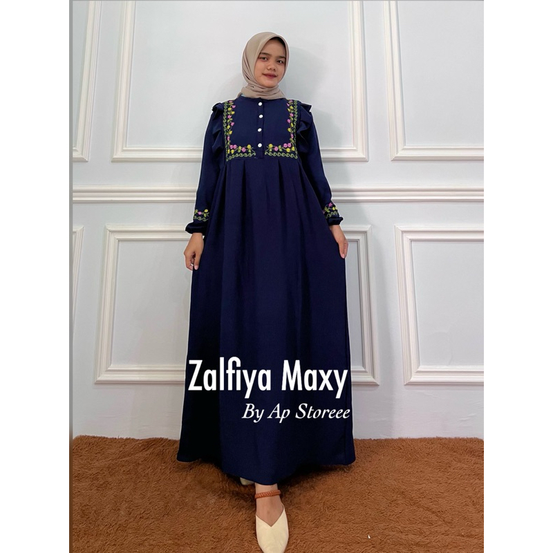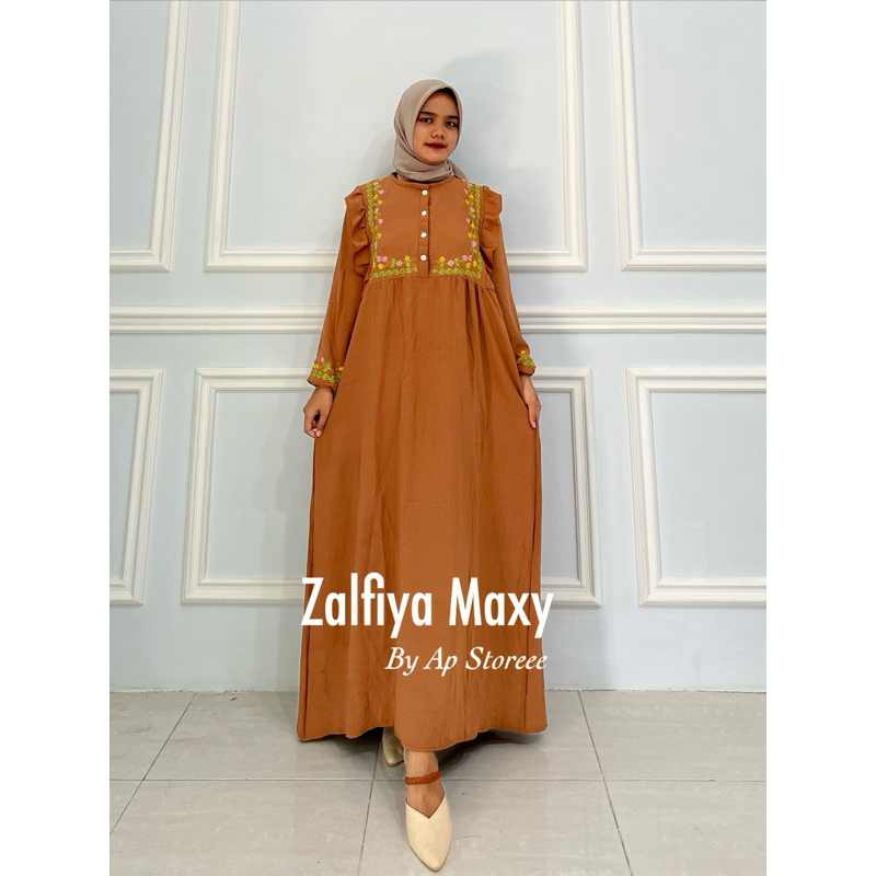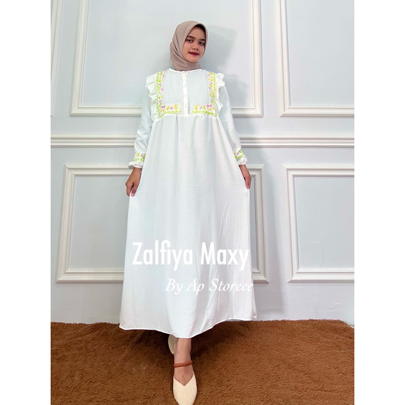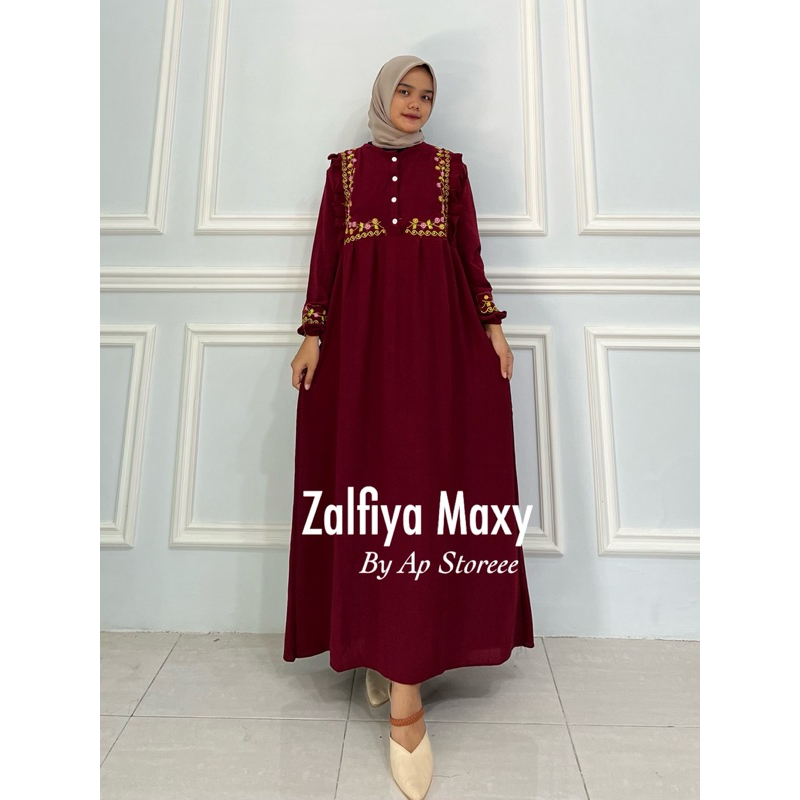 [ BEST SELLER ] ZALFIYA DRESS MAXY CRINKLE AIRFLOW / GAMIS BORDIR ASLI GAMIS LEBARAN WANITA TERLARIS KEKINIAN