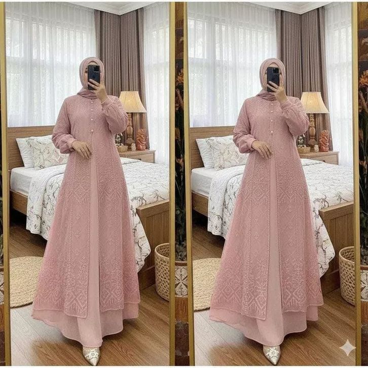 Gamis Brukat Mewah Denara Dress Ceruty Babydoll Mix Sworoski Dress Lebaran 2026 Gamis Wanita Kekinian