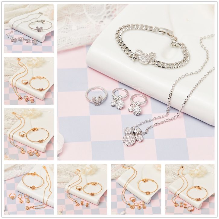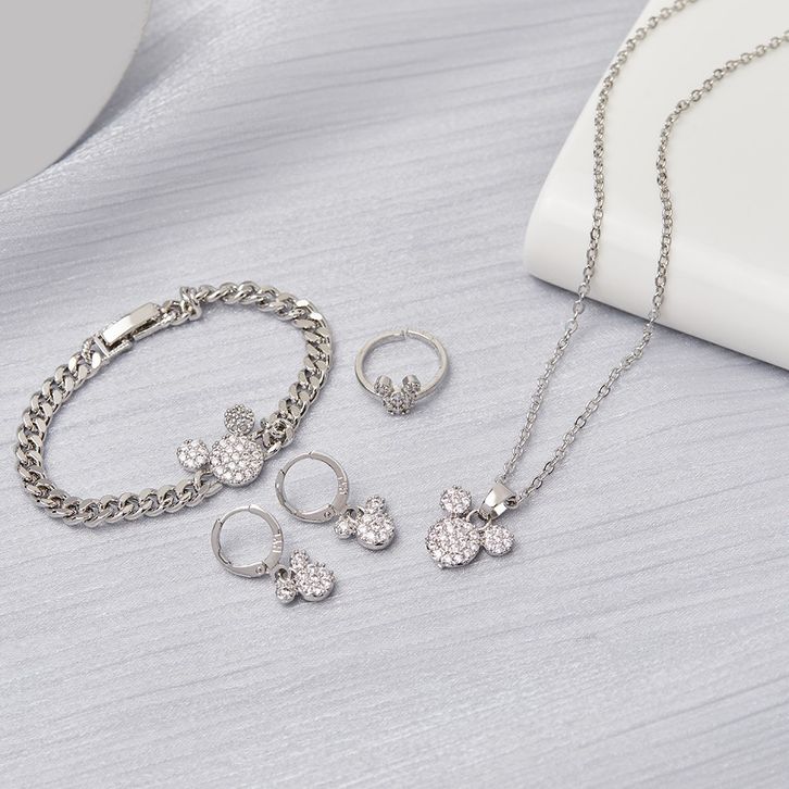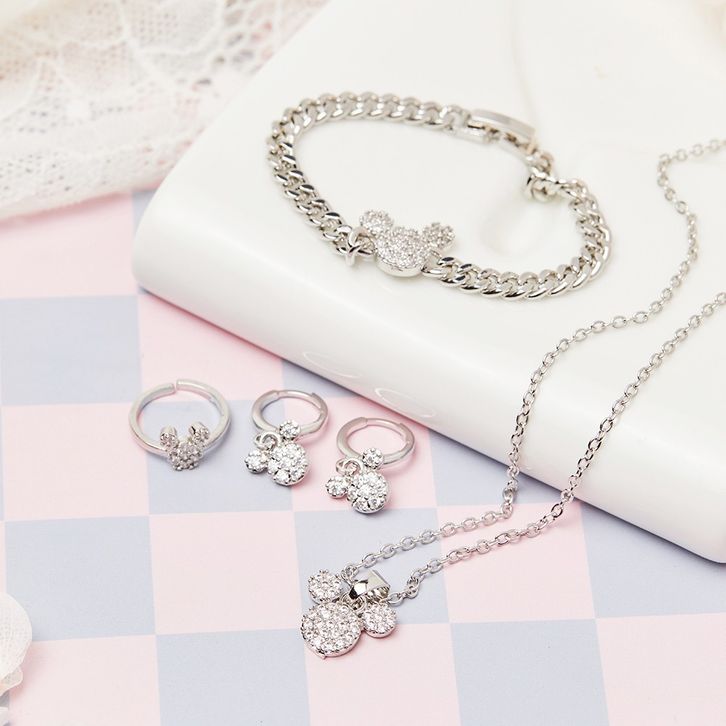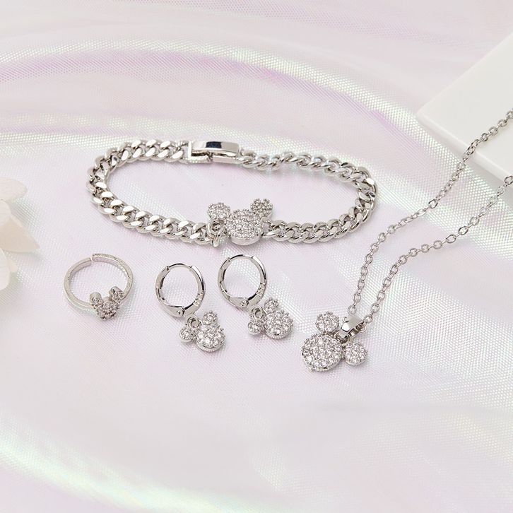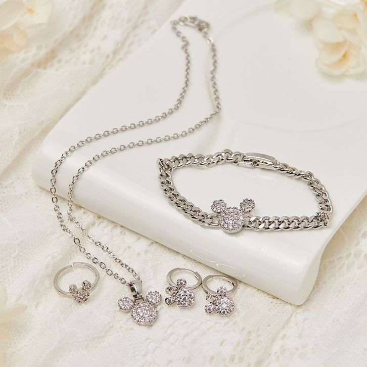 Lanme Jewelry Set Perhiasan Anak Silver Mickey Mouse Set Kalung Anak Aksesoris Anak Perempuan Anting Gelang Set Y369