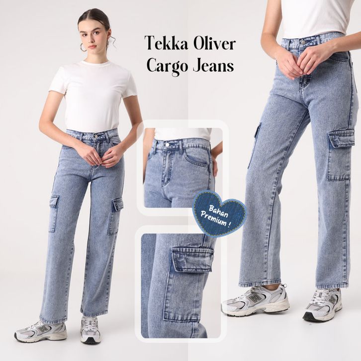 BERRYBENKA - CELANA JEANS PANJANG WANITA TEKKA OLIVER CARGO JEANS - ORIGINAL - OFFICIAL STORE ID - TERBARU - TERLARI