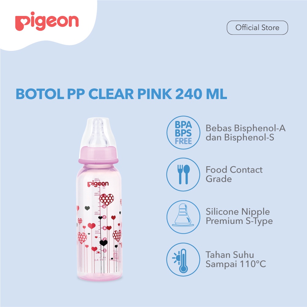 PIGEON BOTOL SUSU PP CLEAR RP 240ML - PINK | BOTOL SUSU BAYI