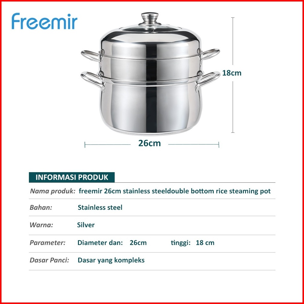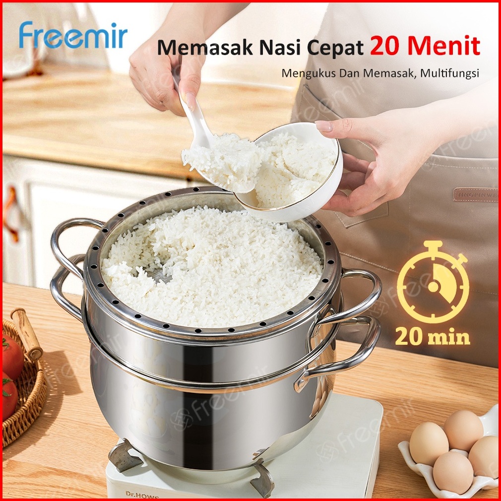 New 10koff Freemir Panci Kukus 2 1 Susun Tutup Kaca Kukusan Stainless Steel Tebal Steamer Pot