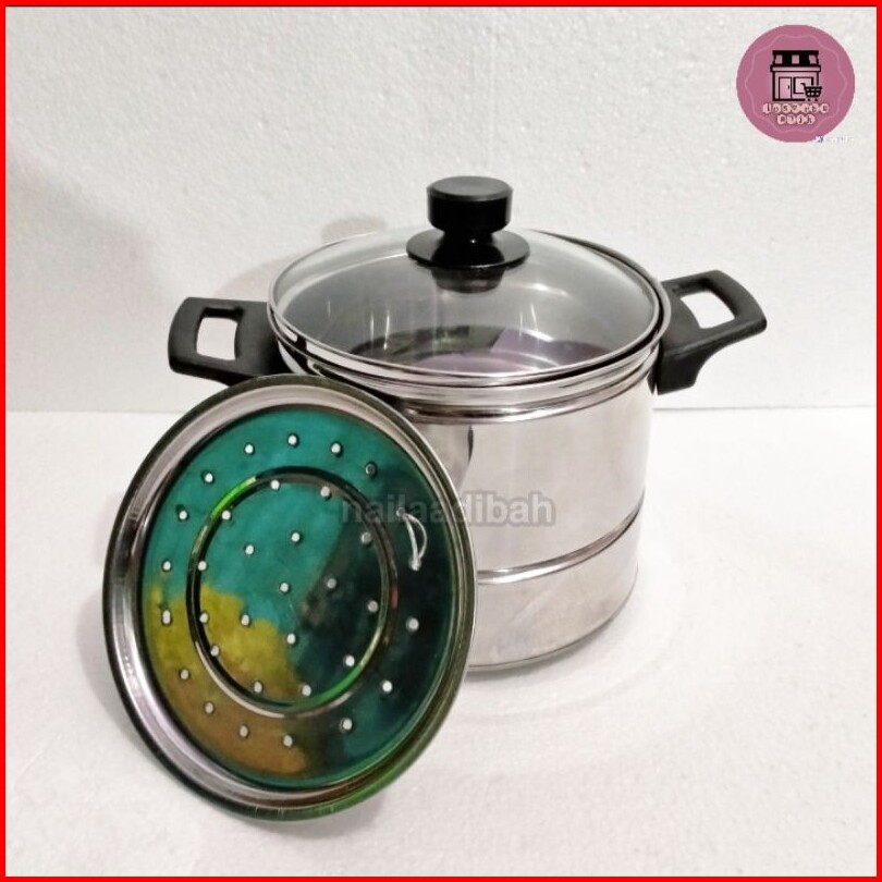 Sablukan Panci Kukus Rebus Stenlis Tutup Kaca Uk 18 20 22