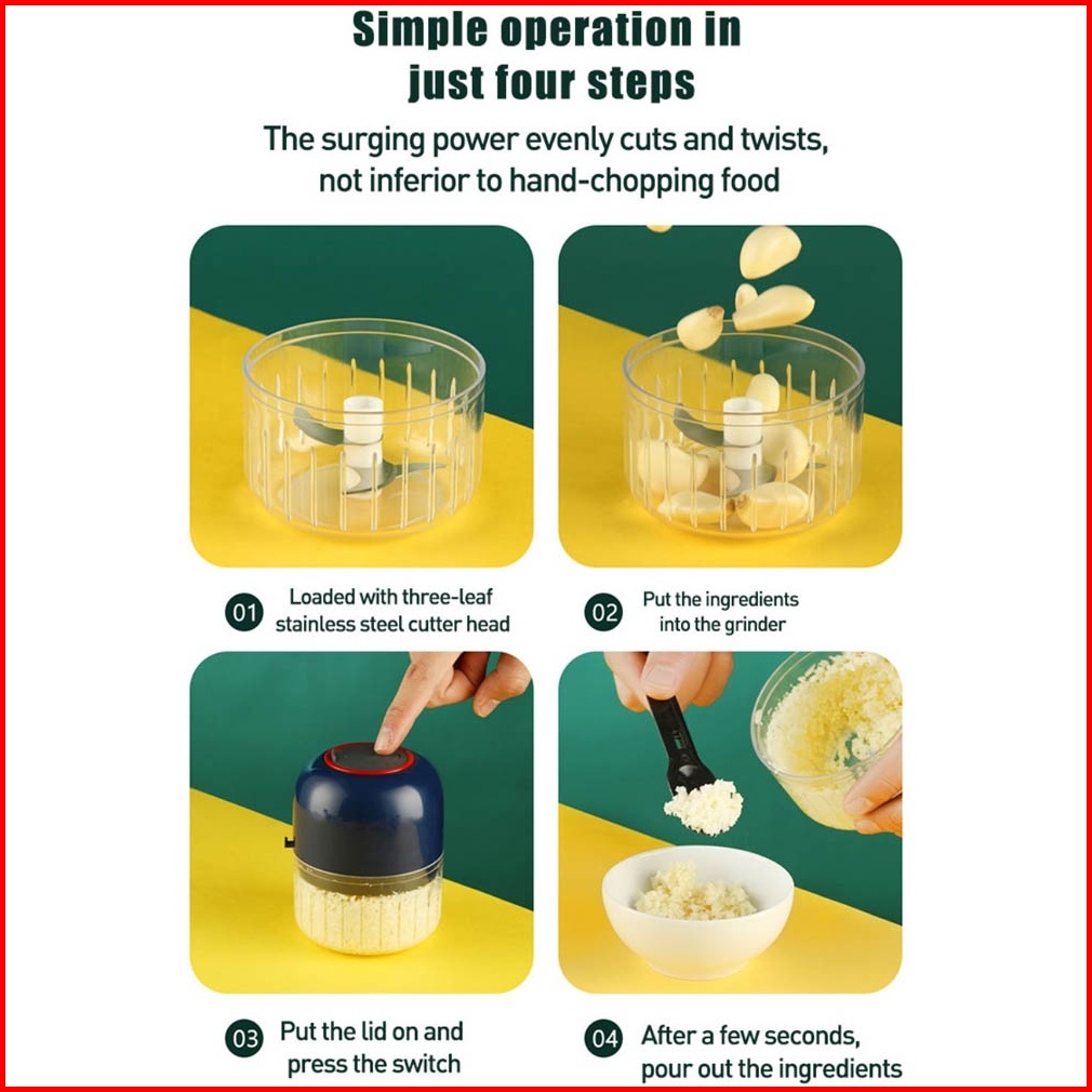 Mini Blender Usb Charge Versi 3 - Mini Chopper Blender Otomatis Bumbu Dapur Meat Grinder Machine 3 Mata Pisau Free Sendo