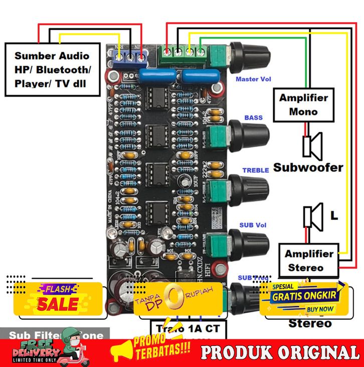 HIFi 2.1 Stereo+Subwoofer Pre-Amplifier Bass Tone Control LFE Filter