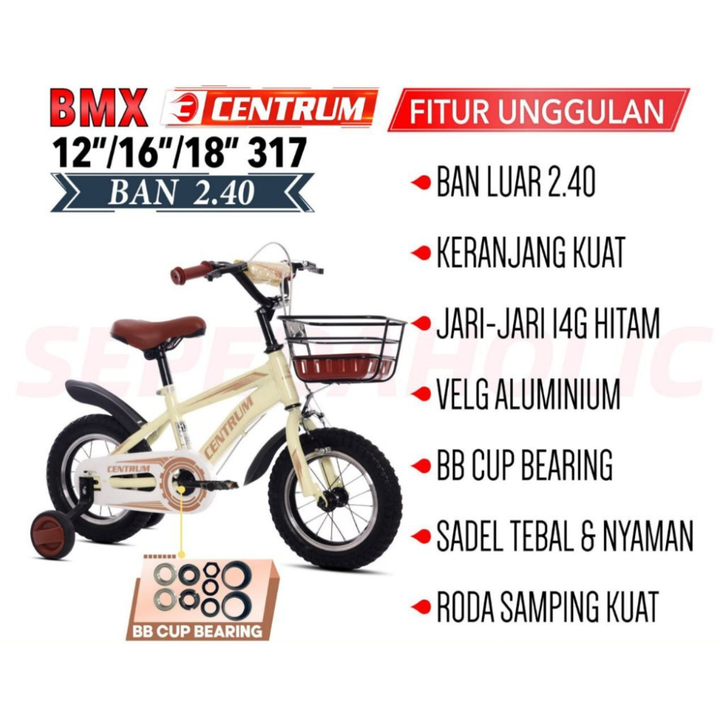 SEPEDA ANAK UKURAN 12 16 18 INCH USIA 2 8 TAHUN LAKI LAKI PEREMPUAN BMX ATLANTIS CENTRUM SEPEDAH RODA 3 BIKE KERANJANG