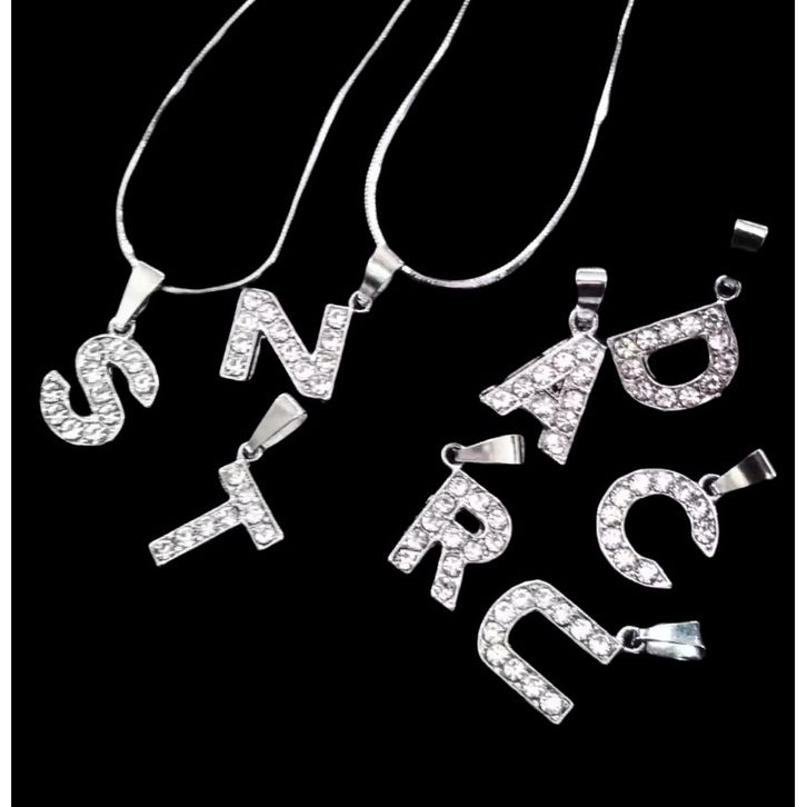 Kalung Huruf Abjad A-Z Inisial Nama Wanita Warna Silver Perak Viral