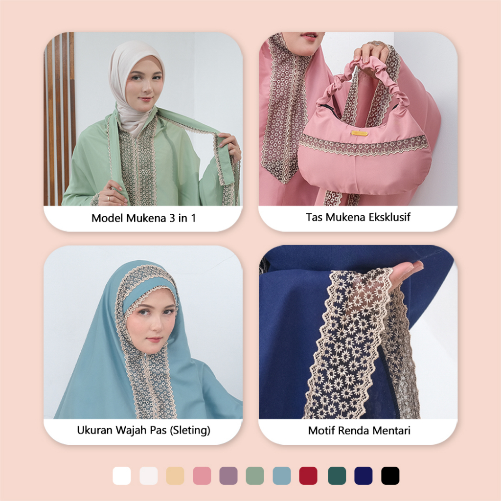MUKENA DEWASA TRAVEL KATUN RENDA BORDIR MENTARI 3 IN 1 MUKENAH TERBARU
