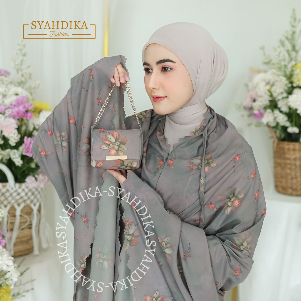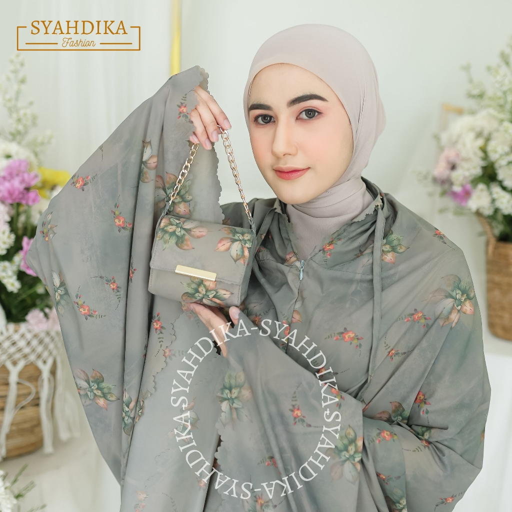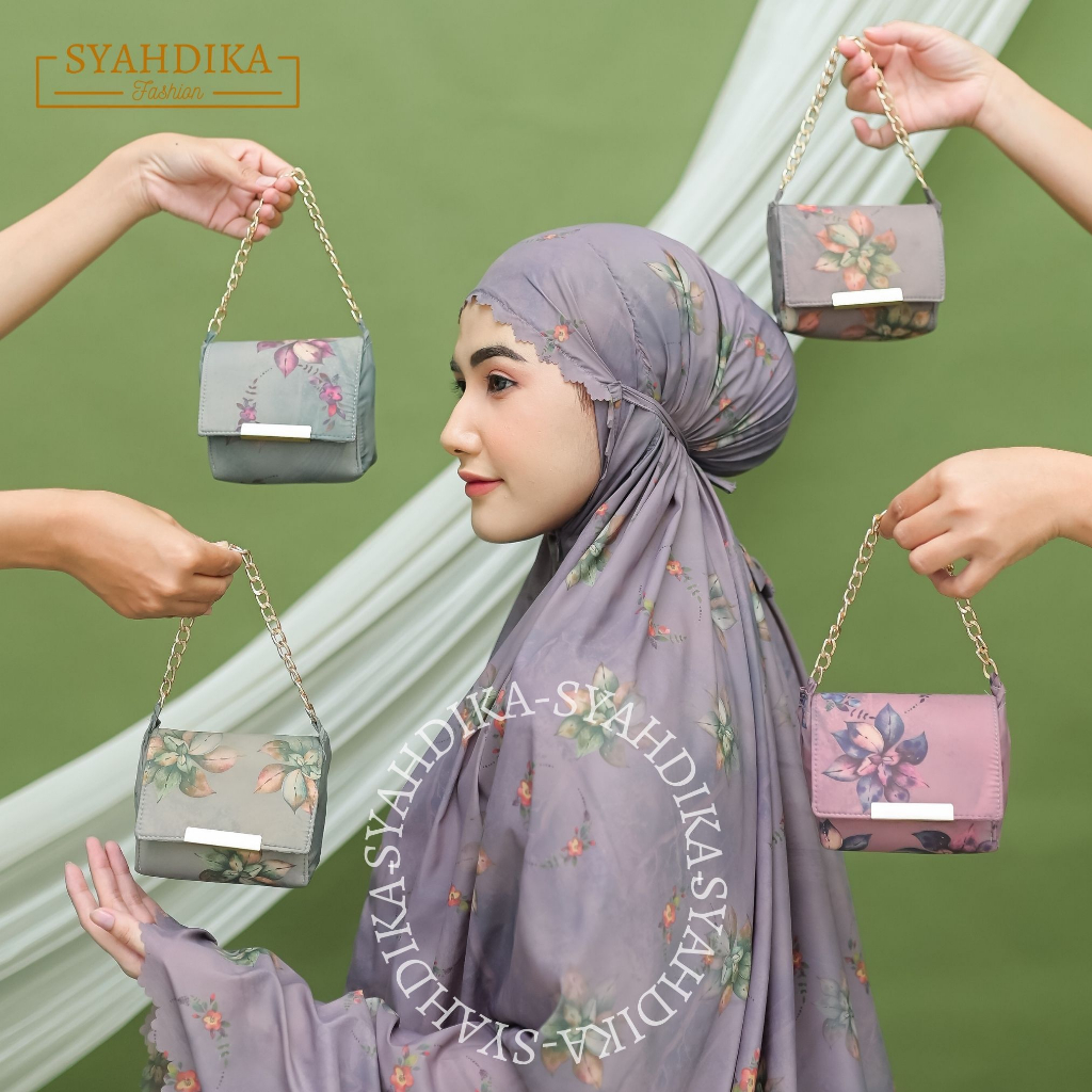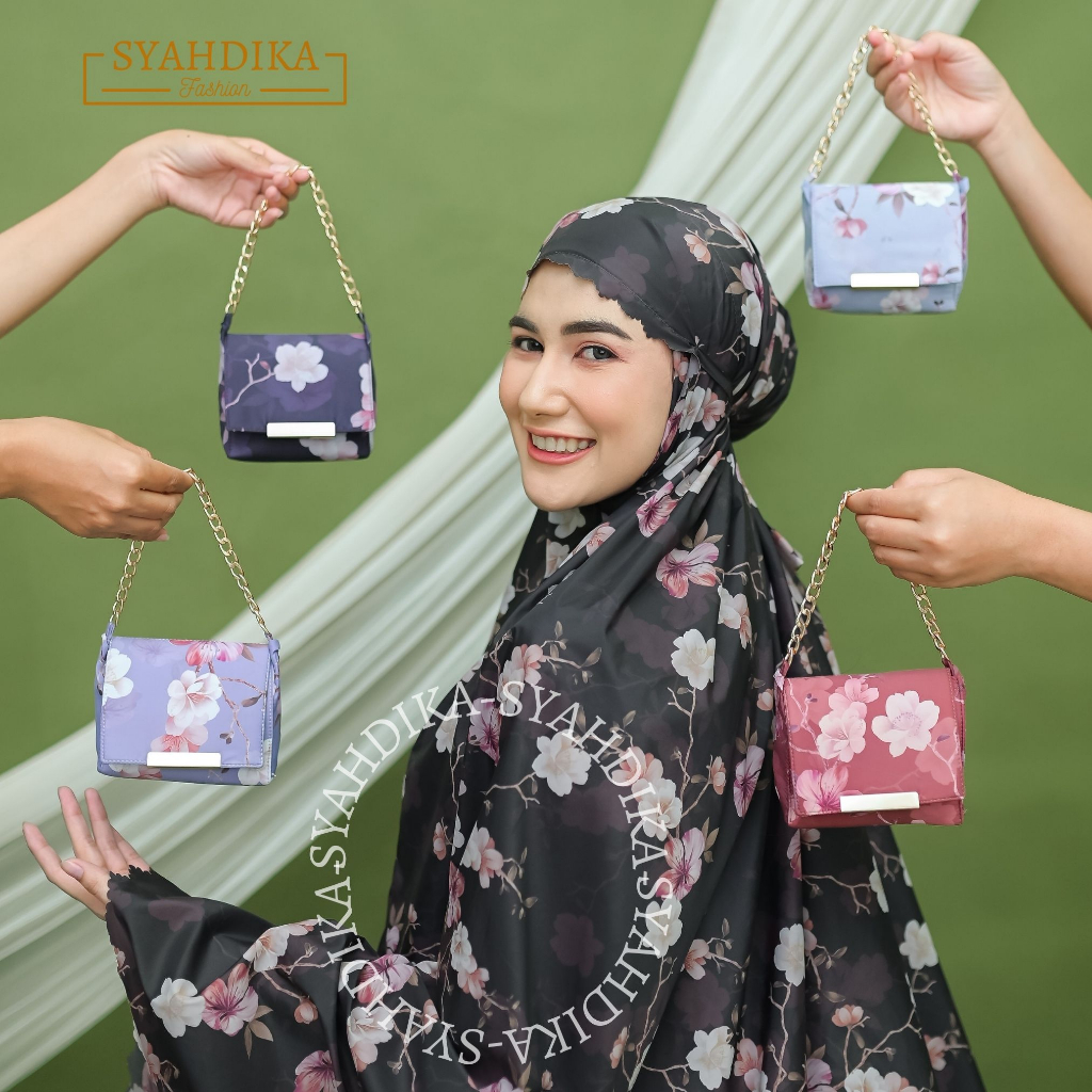 SYAHDIKA - MUKENA TRAVEL MINI PARASUT PREMIUM KOREA 2IN1 MOTIF ORCHID LASER CUT FREE SEJADAH