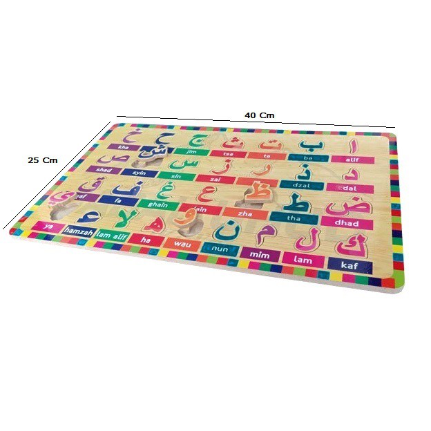 MAINAN KAYU PINTAR PUZZLE KAYU HURUF HIJAIYAH UKURAN BESAR 40 X 25 CM KUALITAS SNI BISA