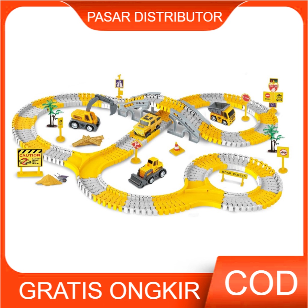 MAINAN ANAK 255PCS CITY TRUCK CREATE A ROAD MOBIL TRACK RAILCAR WAY