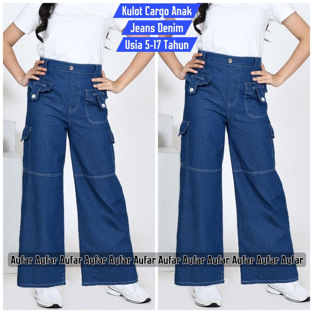 CELANA KULOT JEANS CARGO ANAK PEREMPUAN MODEL KOREA USIA 5-17 TAHUN