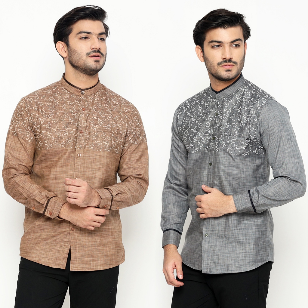 BAJU KOKO PRIA LENGAN PANJANG BAJU KOKO HUSSEIN HORIZONTAL PATTERN