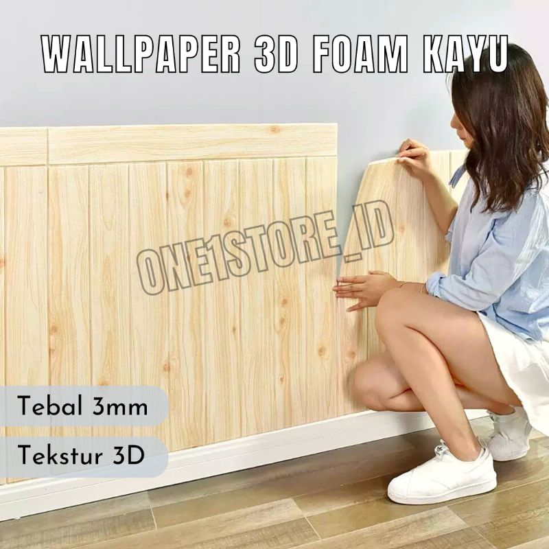 WALLPAPER STIKER DINDING 3D FOAM WALLFOAM SERAT KAYU DEKORASI DINDING