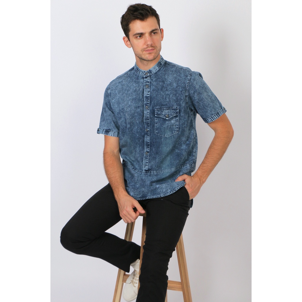 BAJU KOKO KURTA DENIM PREMIUM LENGAN PENDEK 1062