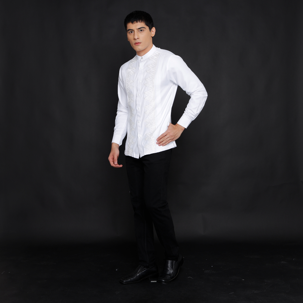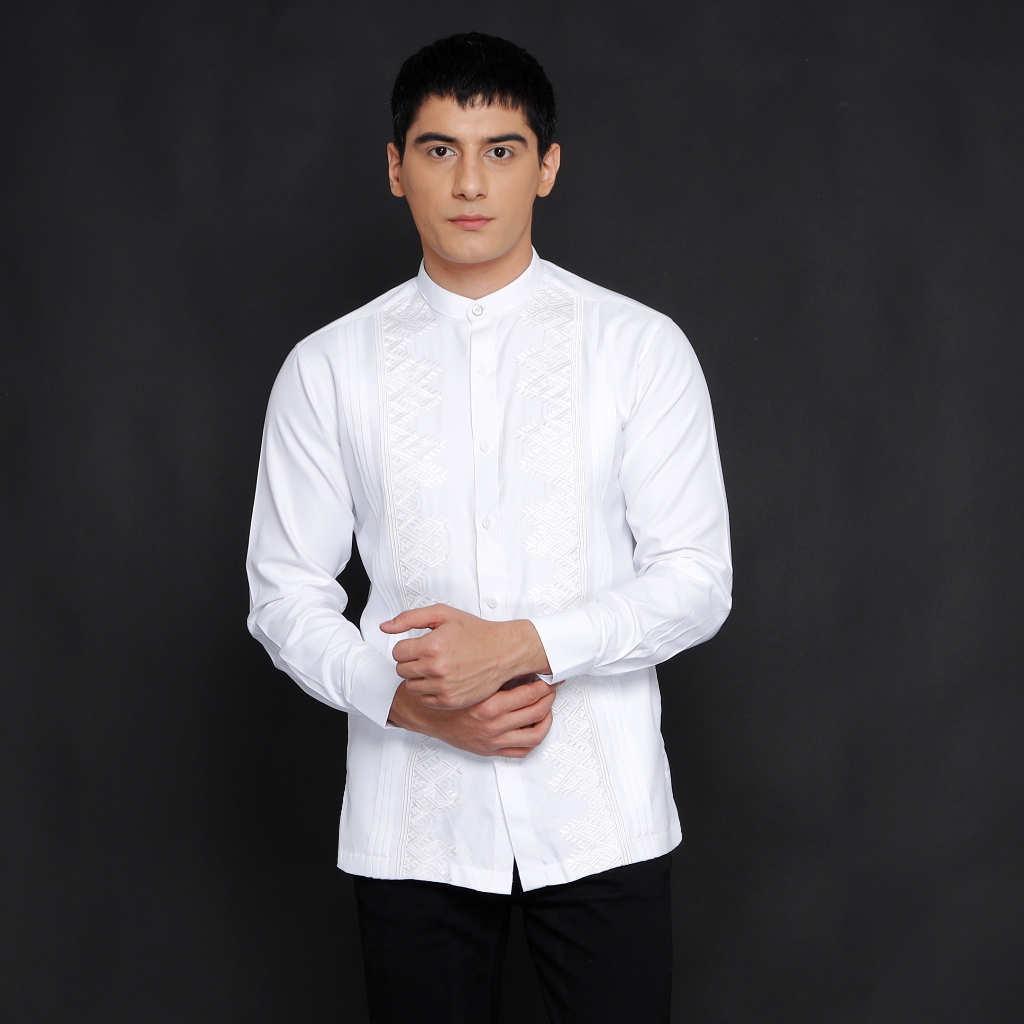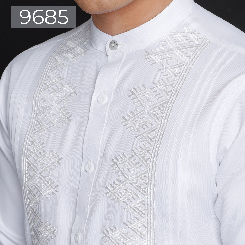 BAJU KOKO PRIA LENGAN PANJANG PREMIUM BORDIR PLEATS DESIGN 9685 WHITE