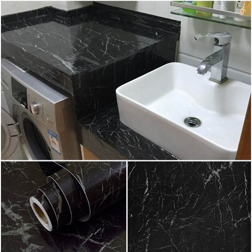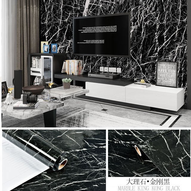 WALLPAPER STICKER DINDING MOTIF MARMER HITAM PANJANG 8M X L 45 CM