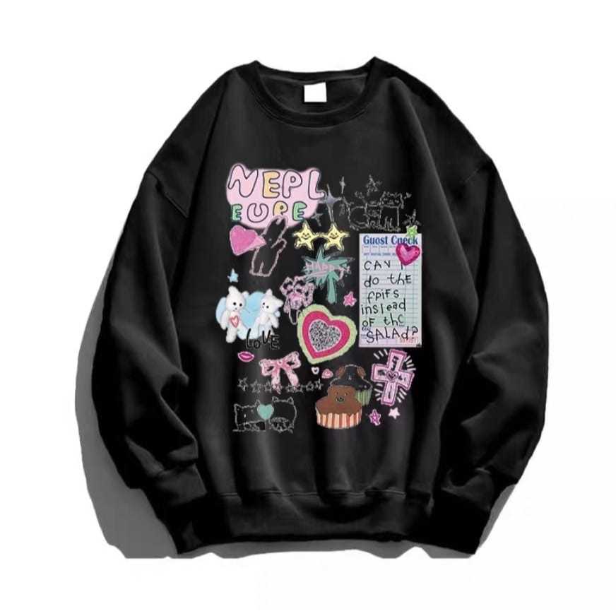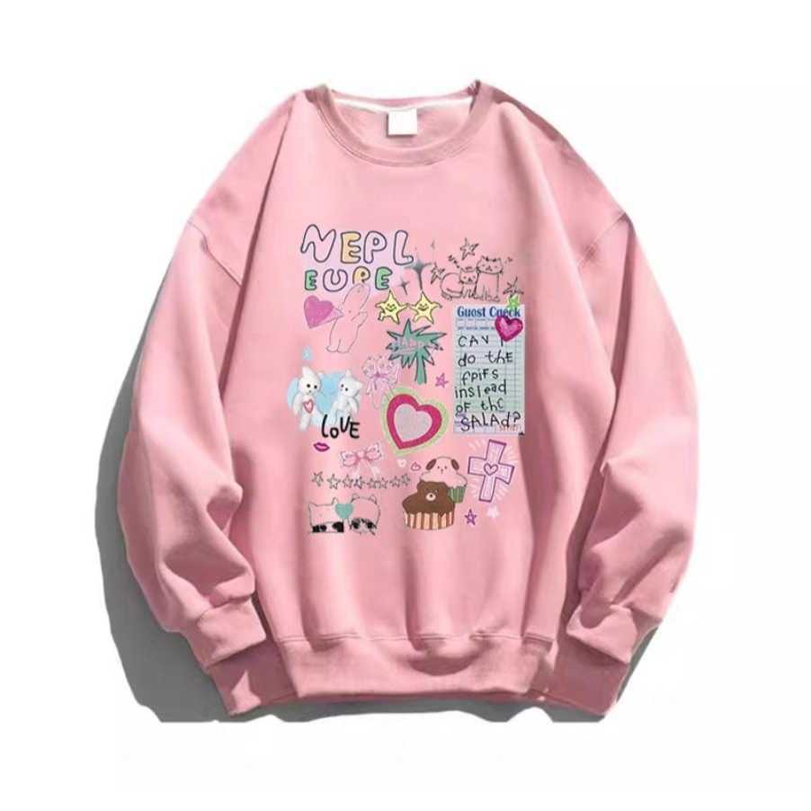 NEPL RABBIT LOVE SWEATER CREWNECK MOTIF TEXT KARTUN LUCU