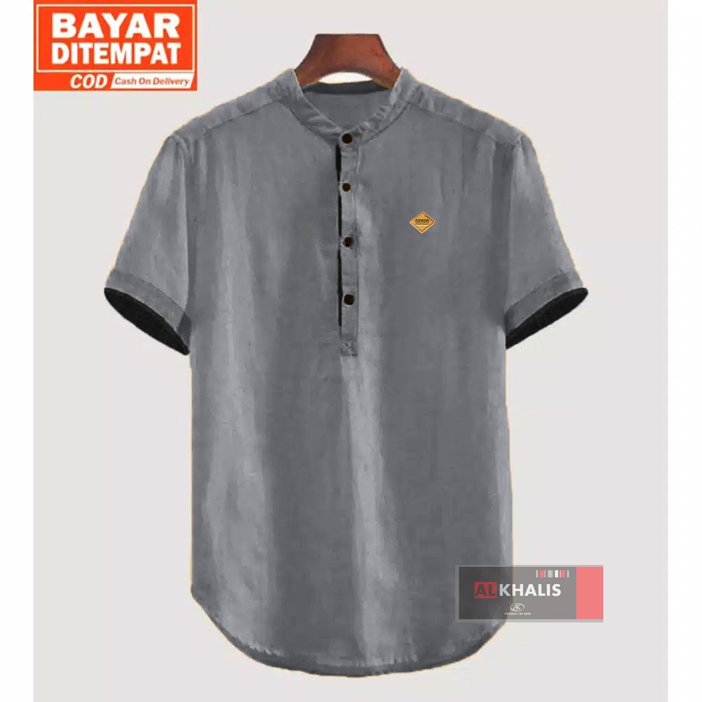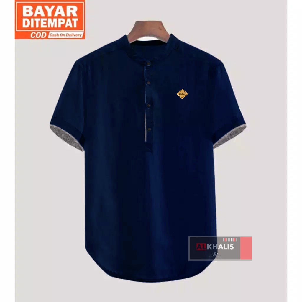 BAJU KOKO KURTA LENGAN PENDEK POLOS PUTIH NAVI HITAM