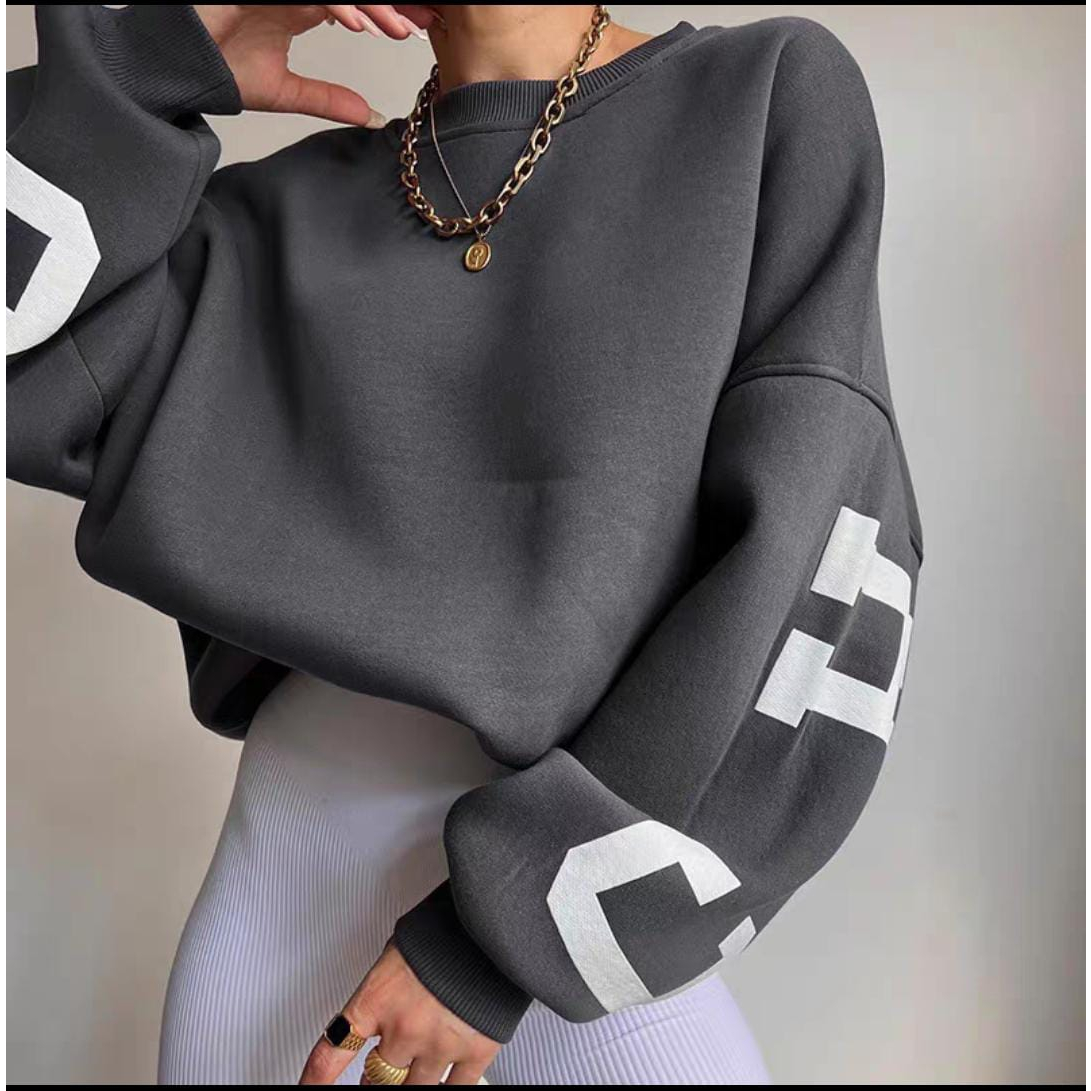 LETTER CHICAGO SWEATER OVERSIZE BASIC CREWNECK OUTWEAR UNISEX (IC)