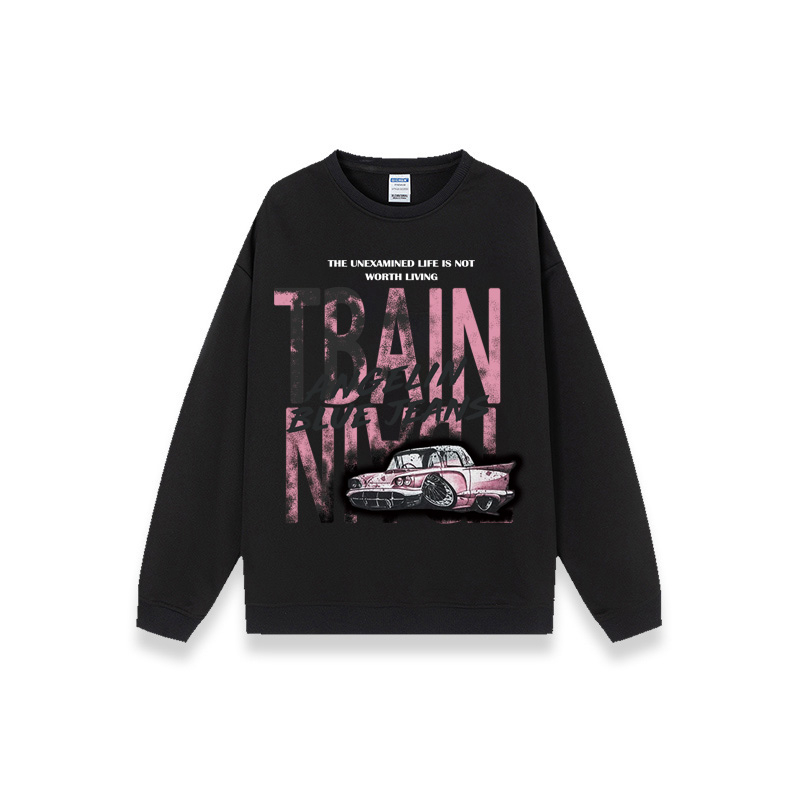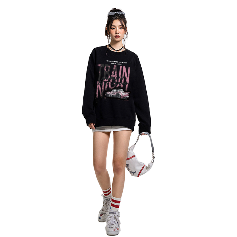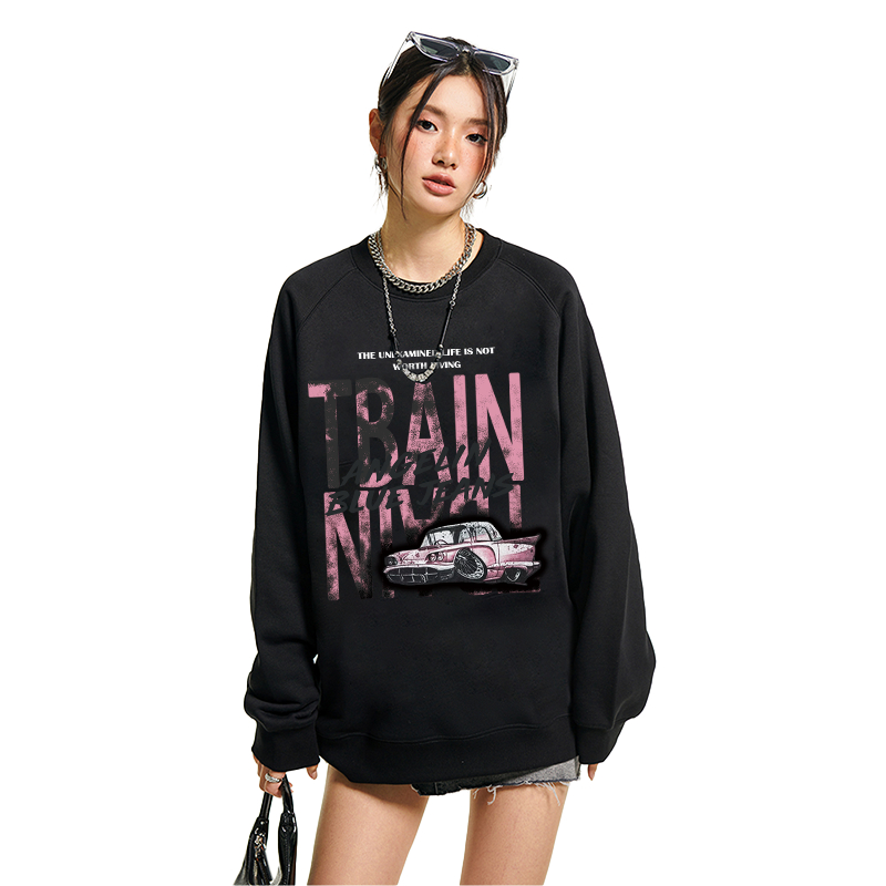 AMERICAN RETRO SWEATER CREWNECK LENGAN PANJANG PINK LETTER PATTERN GRAFFITI PRINTED OVERSIZE