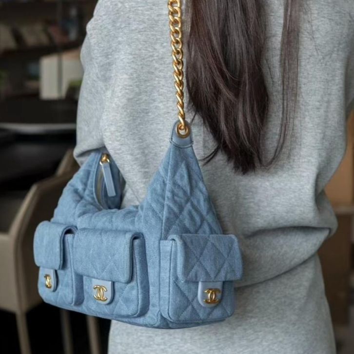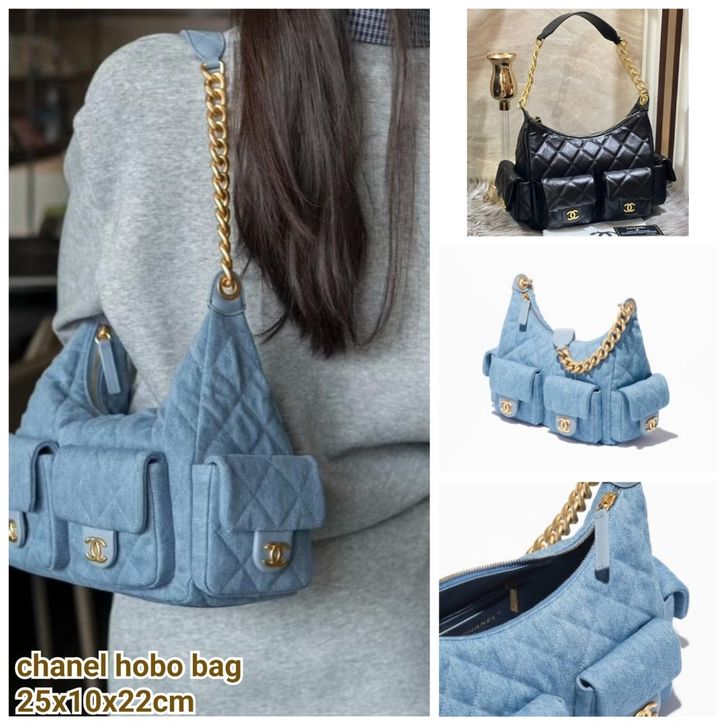 TAS WANITA CHANEL SHINY HOBO BAG DENIM/LAMSKIN MIRROR/TAS CH CENDOL 25CM/SHOULDEEBAG TAS BRANDED TERBARU