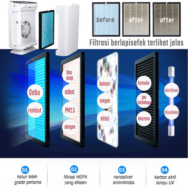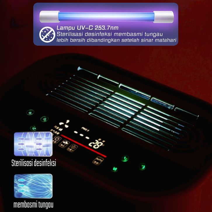 Smart Air Purifier Ruangan Pembersih Udara Dengan Lampu UV Sterilizer dan Disinfeksi Filter Karbon Aktif Hepa Filter Sar
