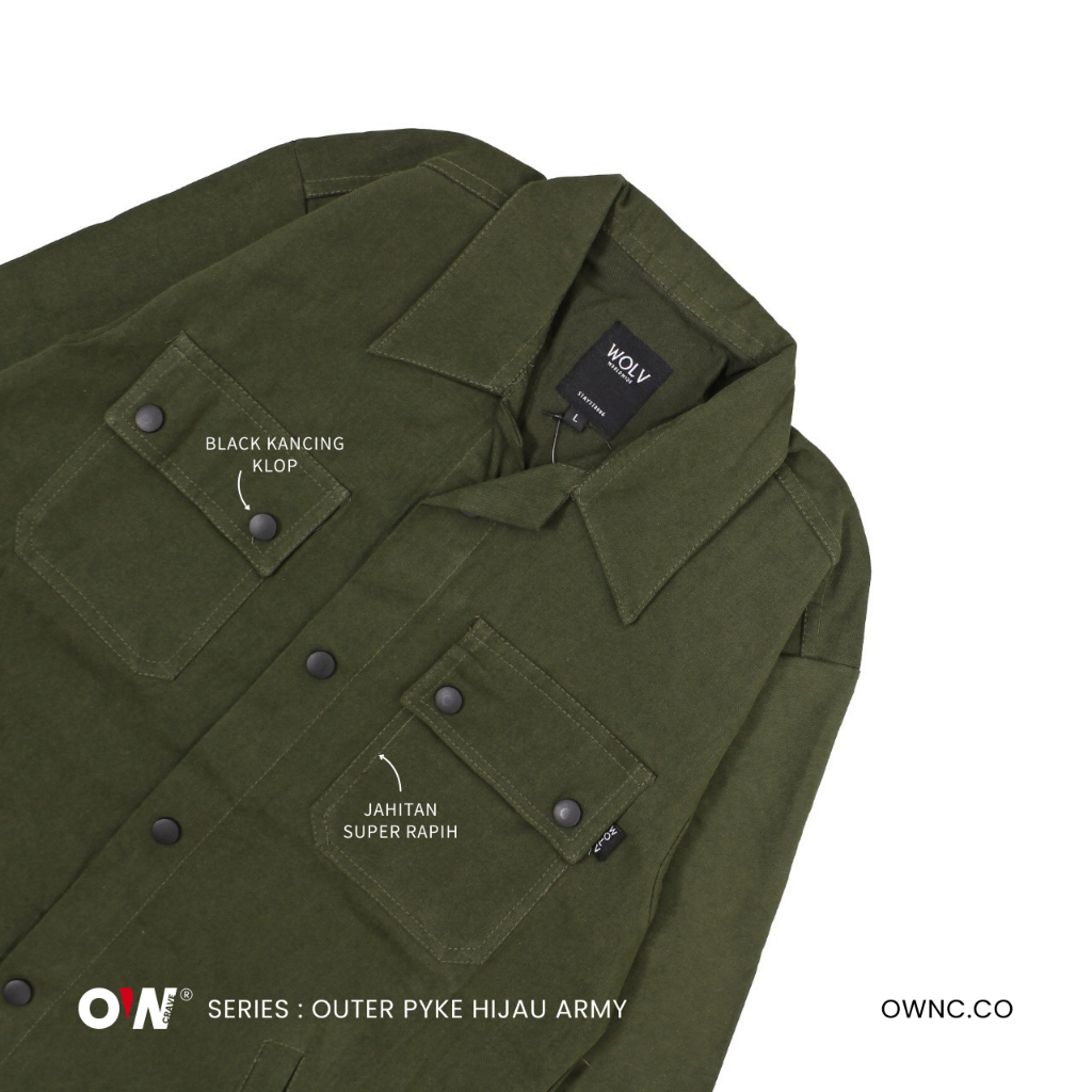 WOLV - JAKET TRUCKER OUTWEAR HIJAU ARMY ORIGINAL WOLV PRIA WANITA BAND LOKAL BANDUNG TERBARU 2022