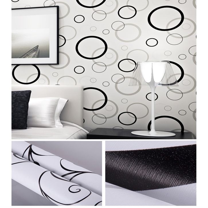 Wallpaper Dinding Roll Murah Motif Polkadot Garis Cakra Hitam Stiker Dinding Kamar Tidur Dapur Ukuran 45cm x 10M