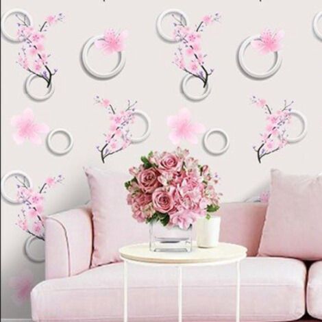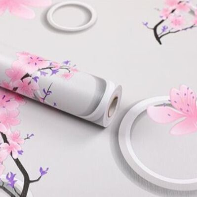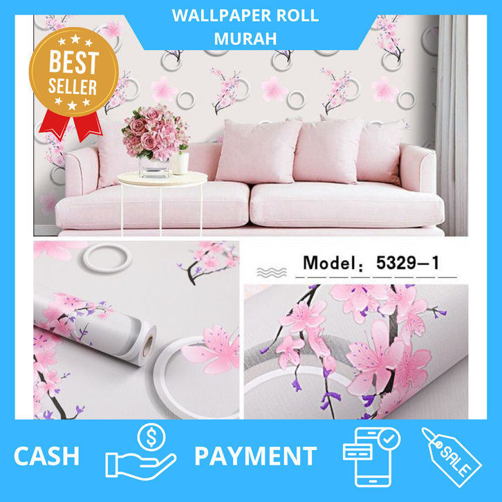 Wallpaper Dinding Roll Murah Motif 3D Lingkaran Bunga Sakupa Pink WallStiker Dinding Kamar Tidur Dapur Ukuran 45cm x 10M