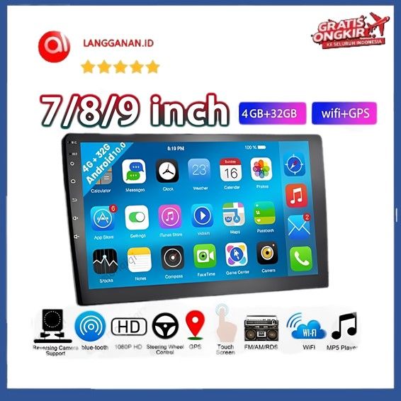 Universal Head Unit Android 7/9/10 Inch 12 Radio Stereo Mobil 4+32GB ROM Bluetooth WiFi GPS Navigasi Head Unit