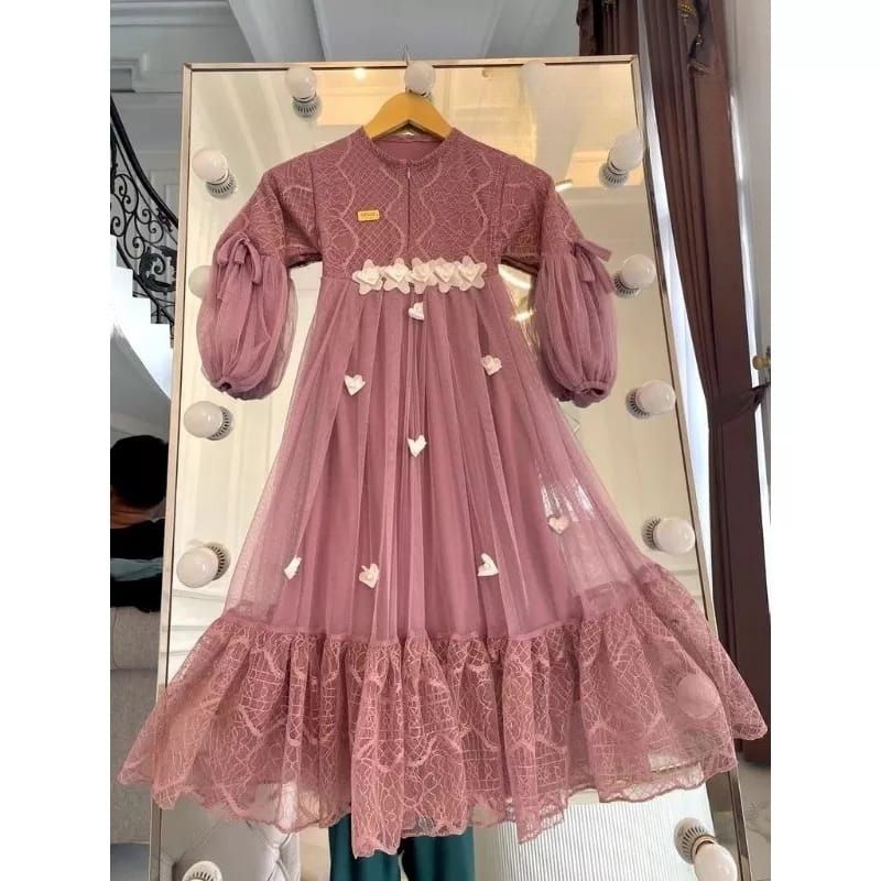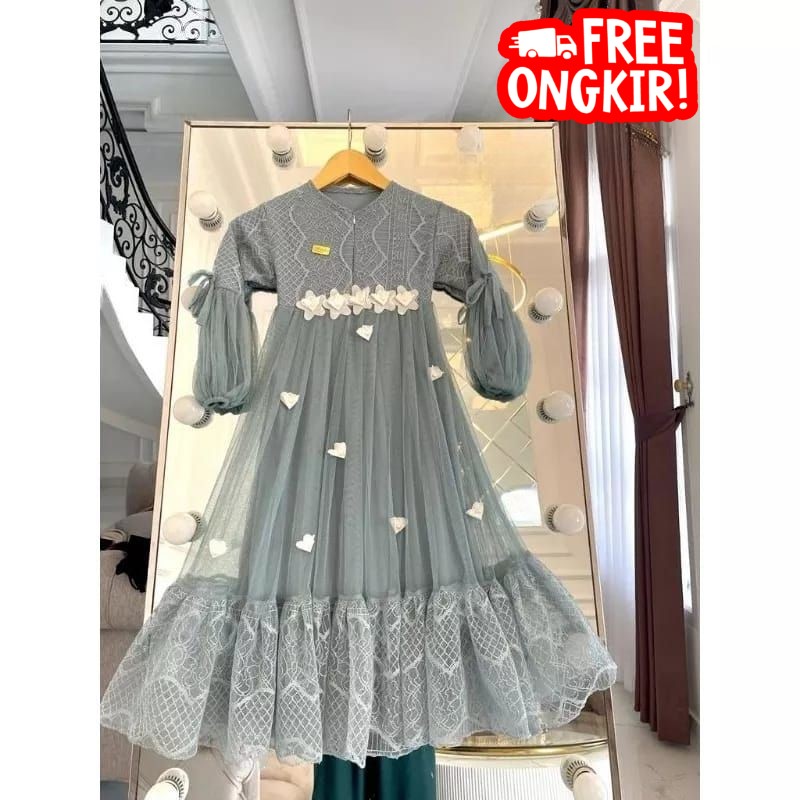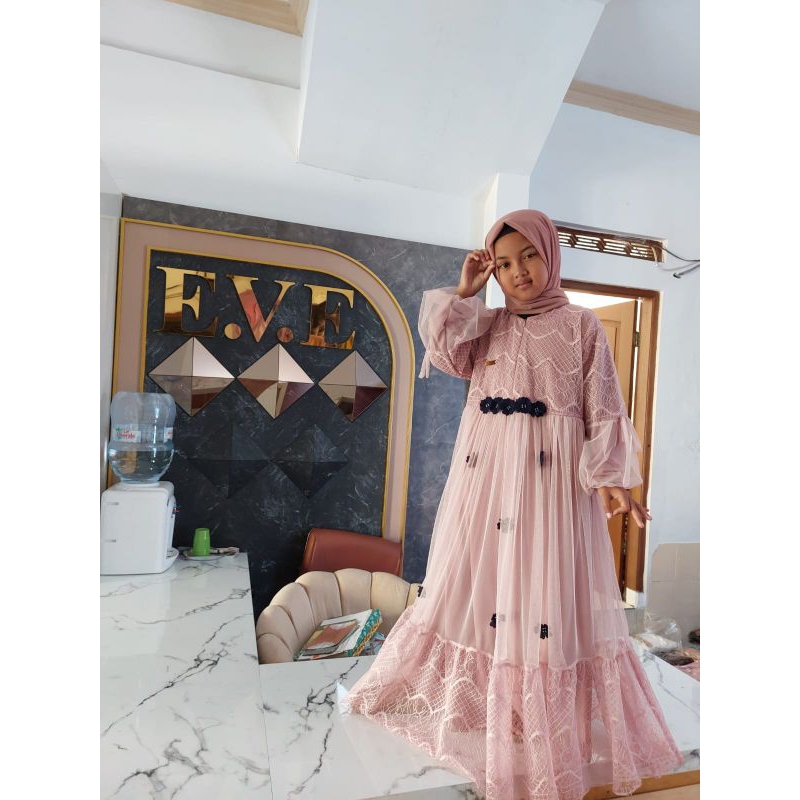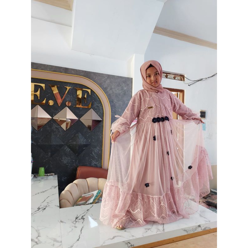 Gamis Pesta Anak Perempuan Motif Bunga Bahan Brukat Mix Tille Usia 3 - 15 Terbaru