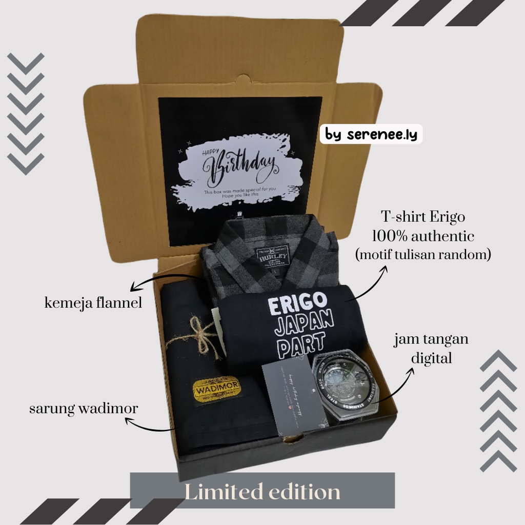 HAMPERS GIFT BOX KEMEJA FLANEL COWOK/ KADO KAOS ERIGO/ HAMPERS ULANG TAHUN COWO KEKINIAN
