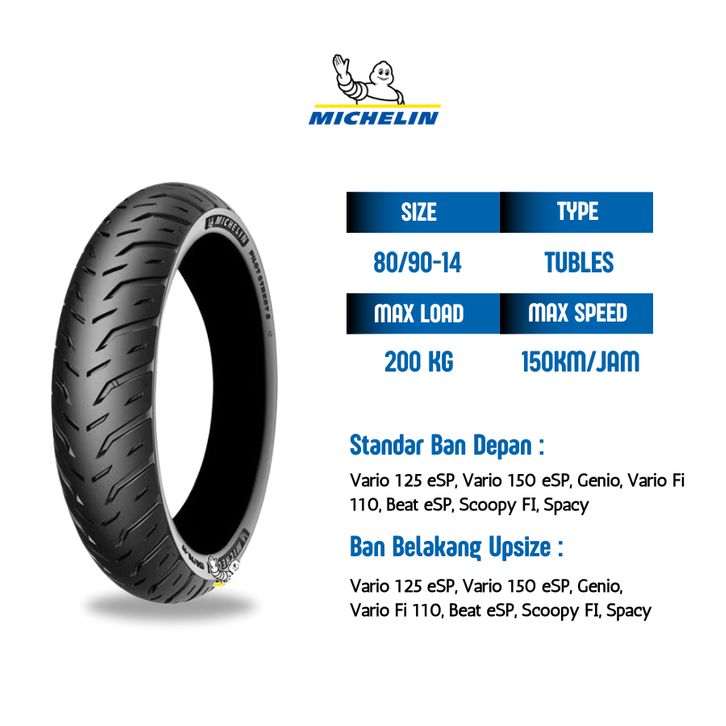 Michelin Ban Motor Matic Vario, Mio, Beat Pilot Street 2 - ukuran 80/90 -14 Tubles