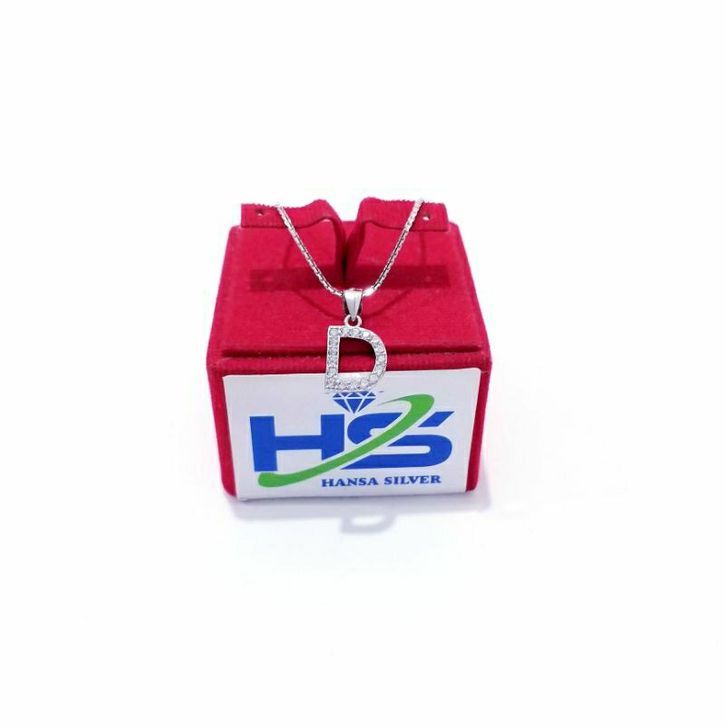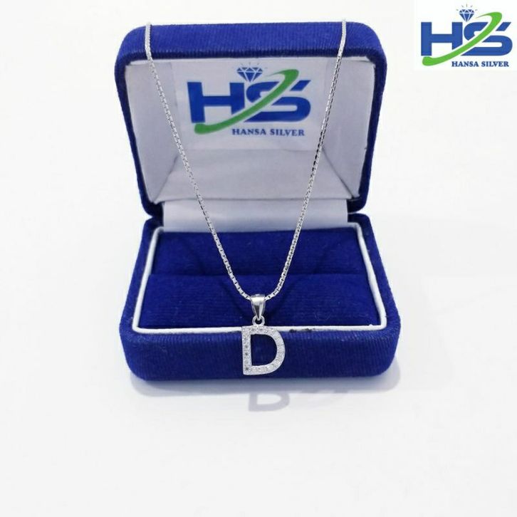Kalung Perak Asli Silver 925 Lapis Emas Putih Model Italy Liontin Huruf Inisial D - Kalung Wanita Anti Karat