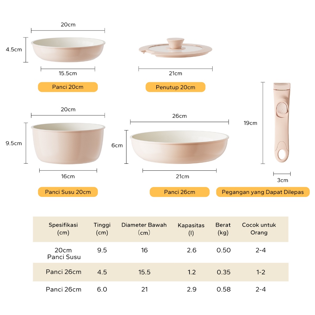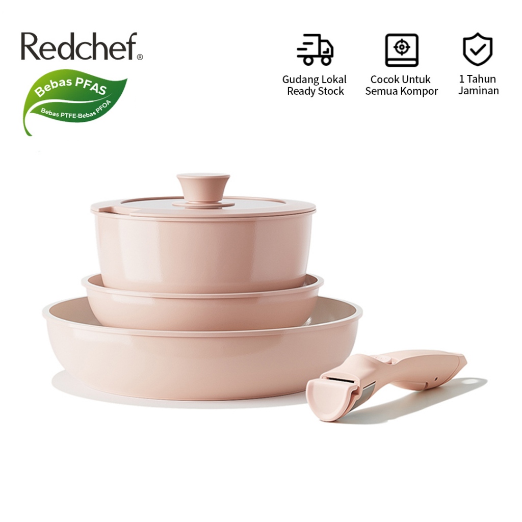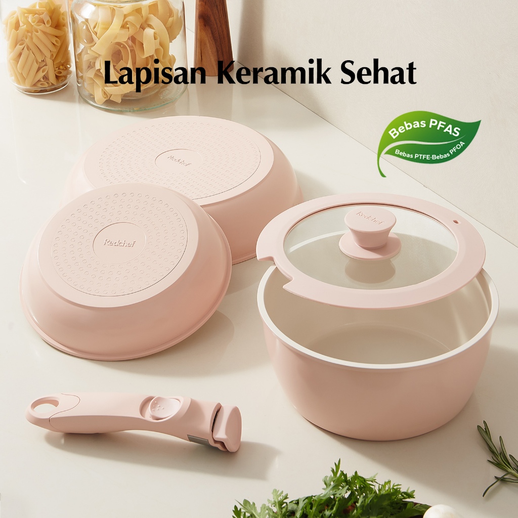 REDCHEF PANCI SET PERALATAN MASAK KERAMIK ANTI LENGKET 16 5 PCS GAGANG LEPAS TANPA PFAS PTFE PFOA COCOK SEMUA KOMPOR