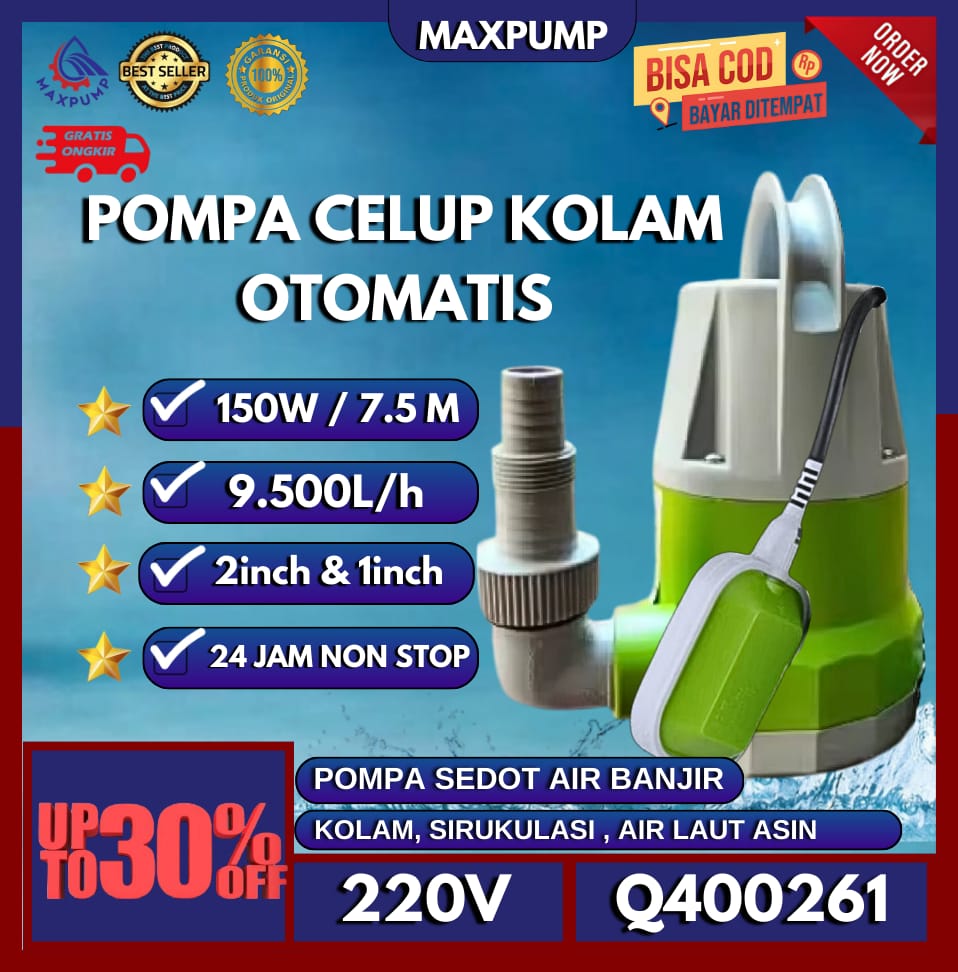 MAXPUMP Pompa Celup Air Kotor Air Asin Sedot Banjir Sirkulasi Pompa Kolam 24 Jam Otomatis Q400261