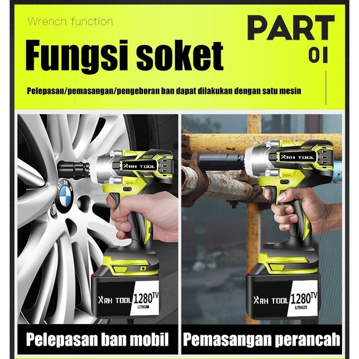 XRH TOOL Impact Wrench Kunci Pas Dampak Tanpa Sikat Tanpa Kabel Kunci pas baterai litium satu set lengkap aksesori