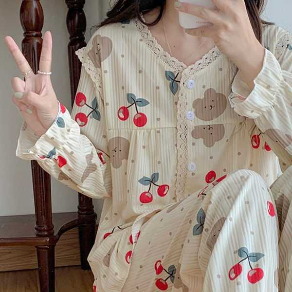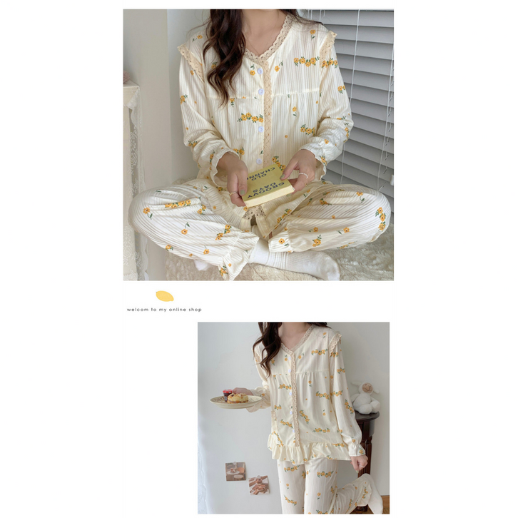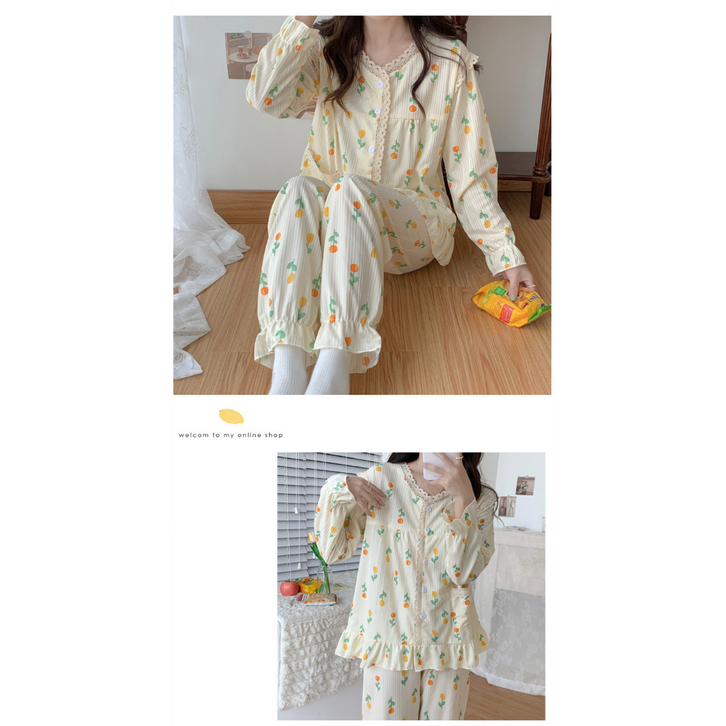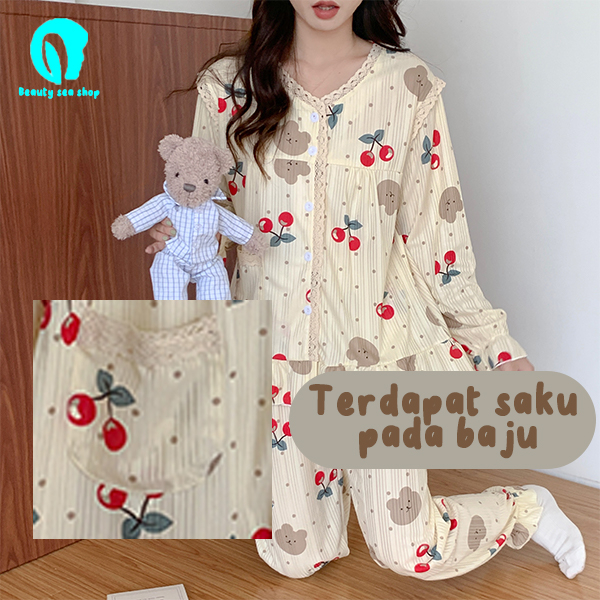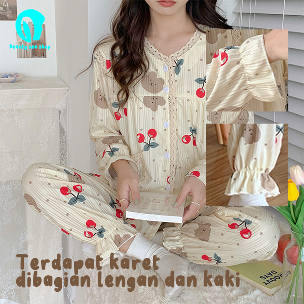 Baju Tidur Wanita Dewasa Piyama Wanita Lengan Panjang Bahan Rib Korea Import