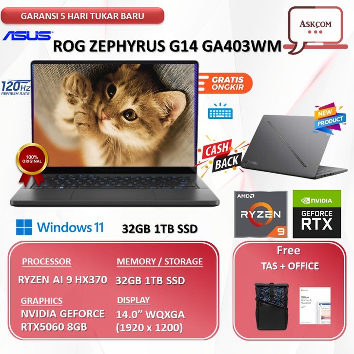 Asus Rog Zephyrus G14 OLED GA403WM RYZEN AI 9 HX370 RTX5060 8GB | 32GB 1TB W11+OHS 14.0WQXGA 120HZ