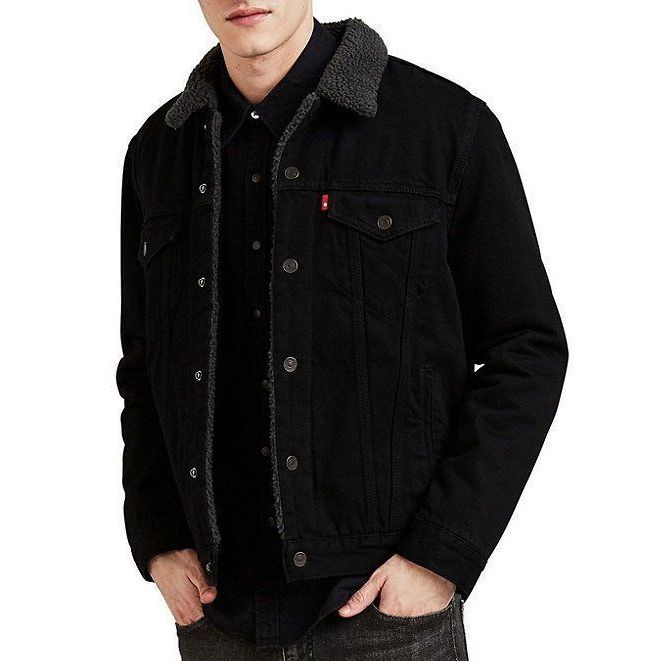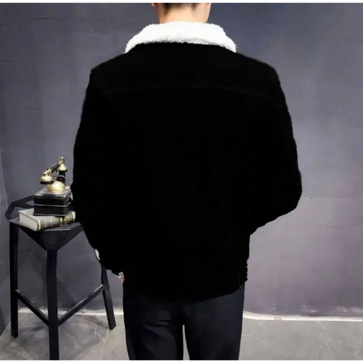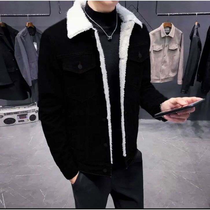 Atasan Pria/Jacket jeans denim sherpa bulu BLACK limited edtion jacket pria kasual elegan terlaris