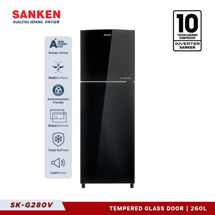 KULKAS 2 PINTU SANKEN 260 230 194 LITER LEMARI ES INVERTER TEMPERED GLASS REFRIGERATOR TANPA BUNGA ES GARANSI MURAH