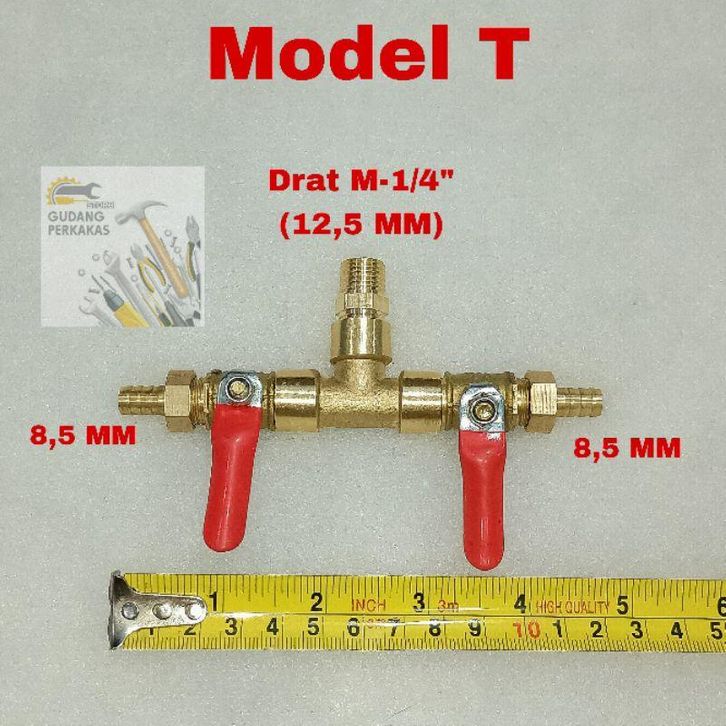 Kran Angin Kompresor 1/4" CABANG 2 - Air Cock Hato 1/4 Inch Kuningan Cabang2